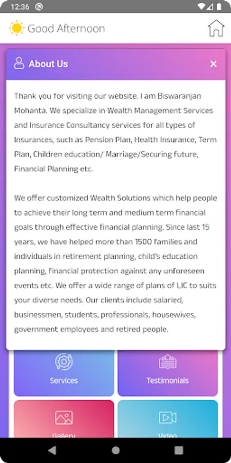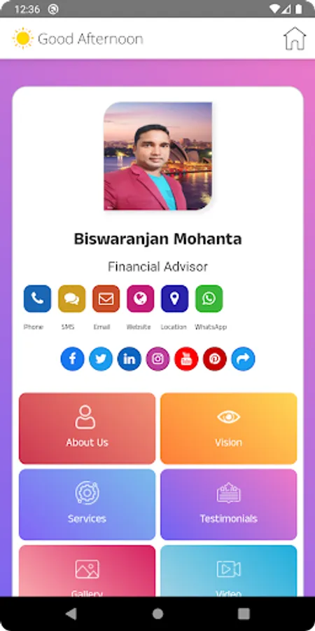 This Application is very helpful for my customers or the public to getting touch with me for taking financial consultations and to know more about me.