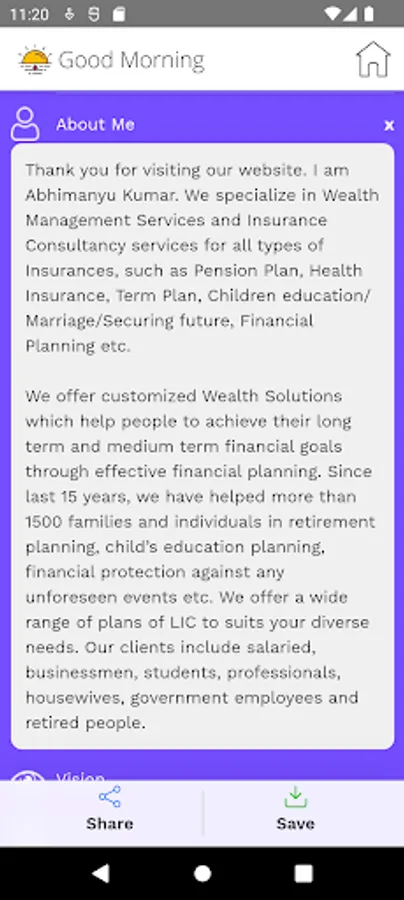 This Application is very helpful for my customers or the public to getting touch with me for taking financial consultations and to know more about me.