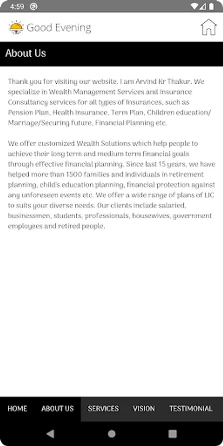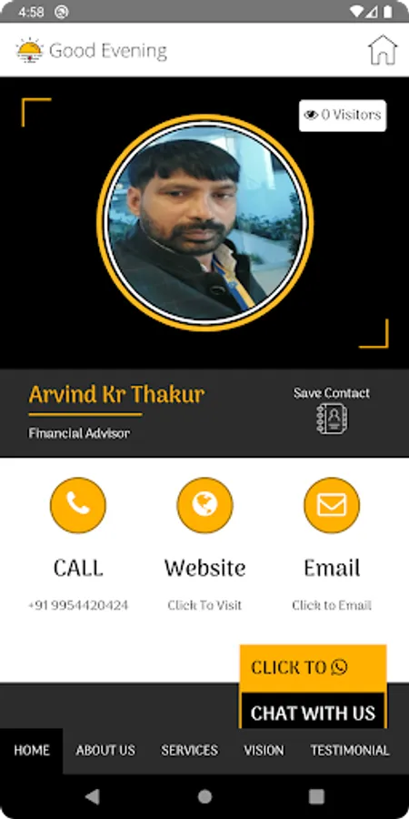 This Application is very helpful for my customers or the public to getting touch with me for taking financial consultations and to know more about me.