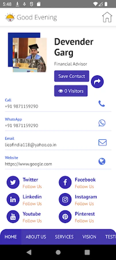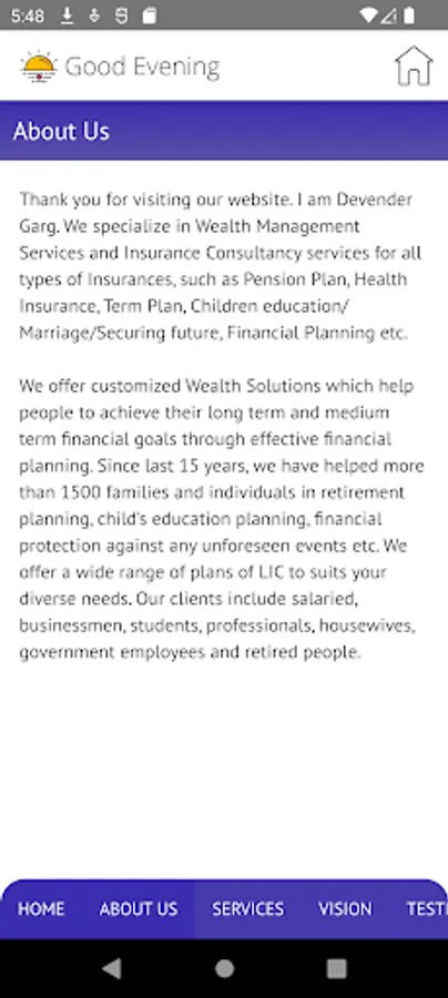 This Application is very helpful for my customers or the public to getting touch with me for taking financial consultations and to know more about me.