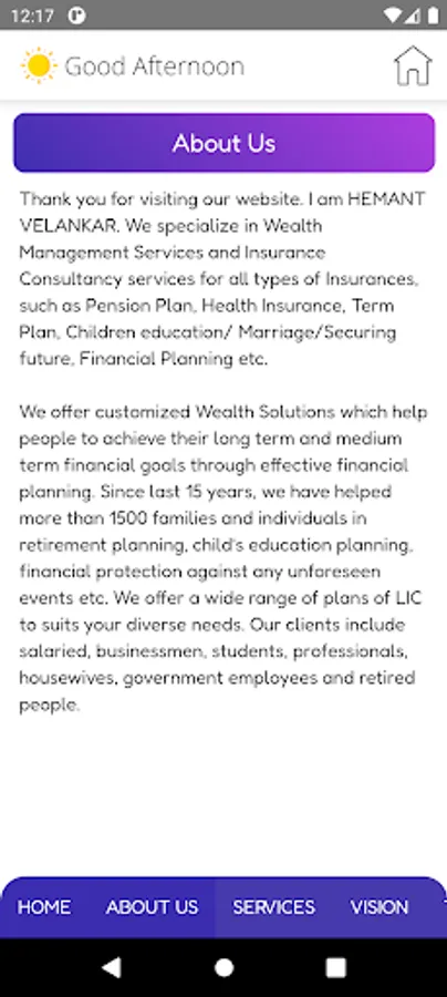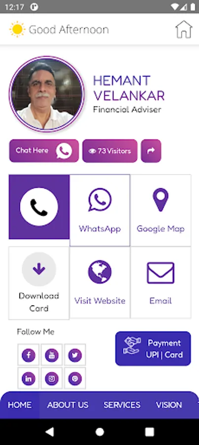 This Application is very helpful for my customers or the public to getting touch with me for taking financial consultations and to know more about me.