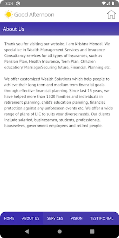 This Application is very helpful for my customers or the public to getting touch with me for taking financial consultations and to know more about me.