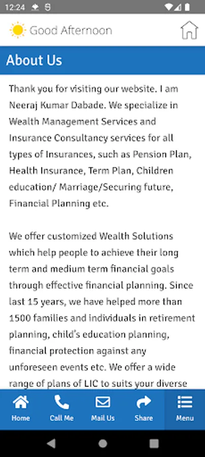 This Application is very helpful for my customers or the public to getting touch with me for taking financial consultations and to know more about me.