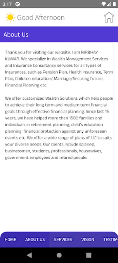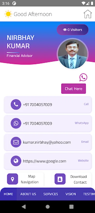 This Application is very helpful for my customers or the public to getting touch with me for taking financial consultations and to know more about me.