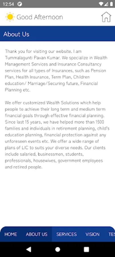 This Application is very helpful for my customers or the public to getting touch with me for taking financial consultations and to know more about me.
