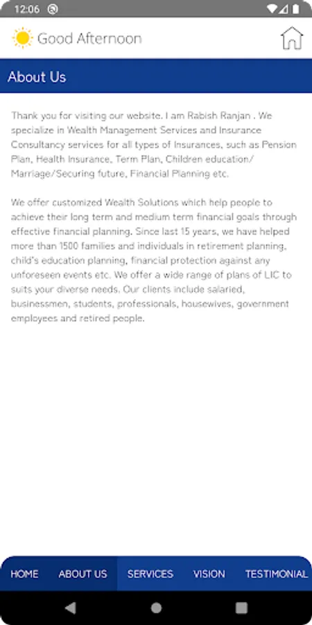 This Application is very helpful for my customers or the public to getting touch with me for taking financial consultations and to know more about me.