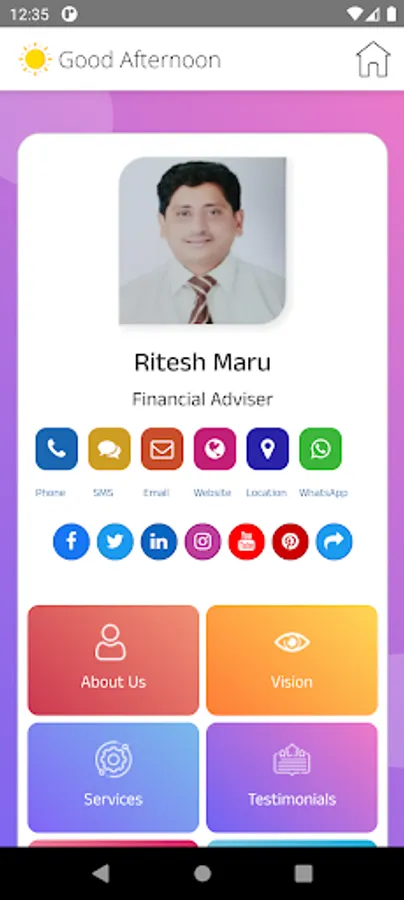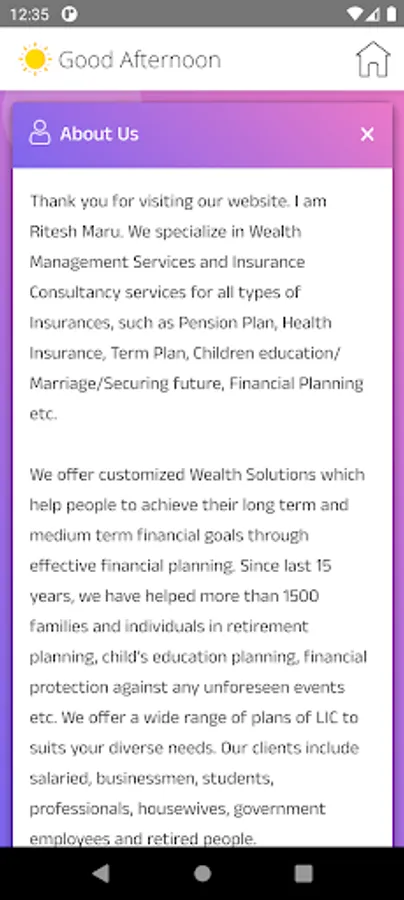 This Application is very helpful for my customers or the public to getting touch with me for taking financial consultations and to know more about me.