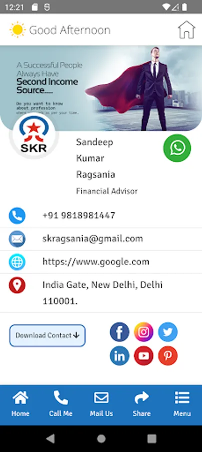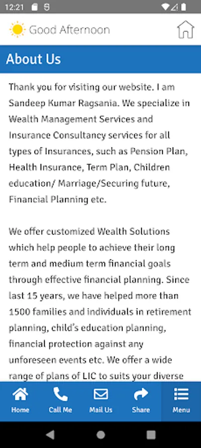 This Application is very helpful for my customers or the public to getting touch with me for taking financial consultations and to know more about me.