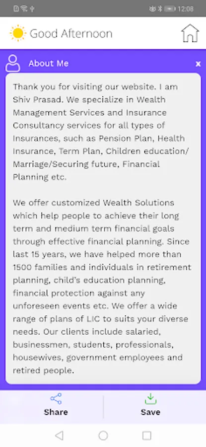 This Application is very helpful for my customers or the public to getting touch with me for taking financial consultations and to know more about me.