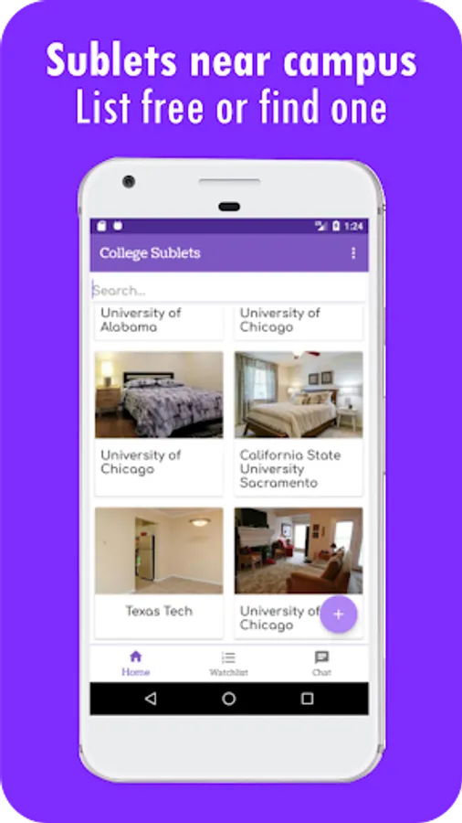 College Sublets allows college student to sublet apartment, studio, house, and room near college campus. Only college students can list sublet on sublet app. Student can sublease short term sublet and long term sublet for free. Fellow college students can easily find and rent your studio sublet, room sublet, house sublet and apartment sublet near college campus fast. Sublet app listing includes fall, winter, spring and summer sublets.