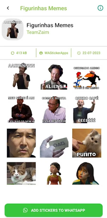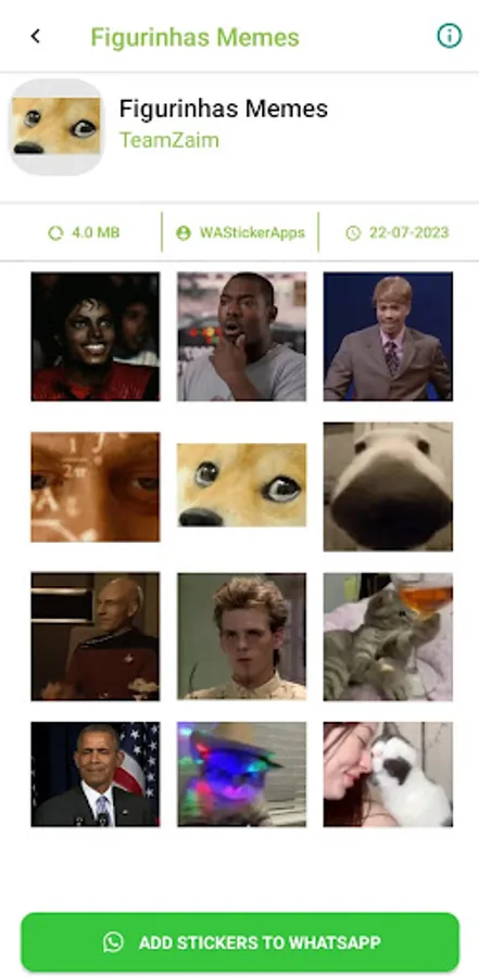 Whether it's to brighten your friends' day or to express your own reactions in a funny way, the "Meme Stickers" app is the perfect tool to make your messages even more fun. Download now and start sharing laughter in every WhatsApp conversation!