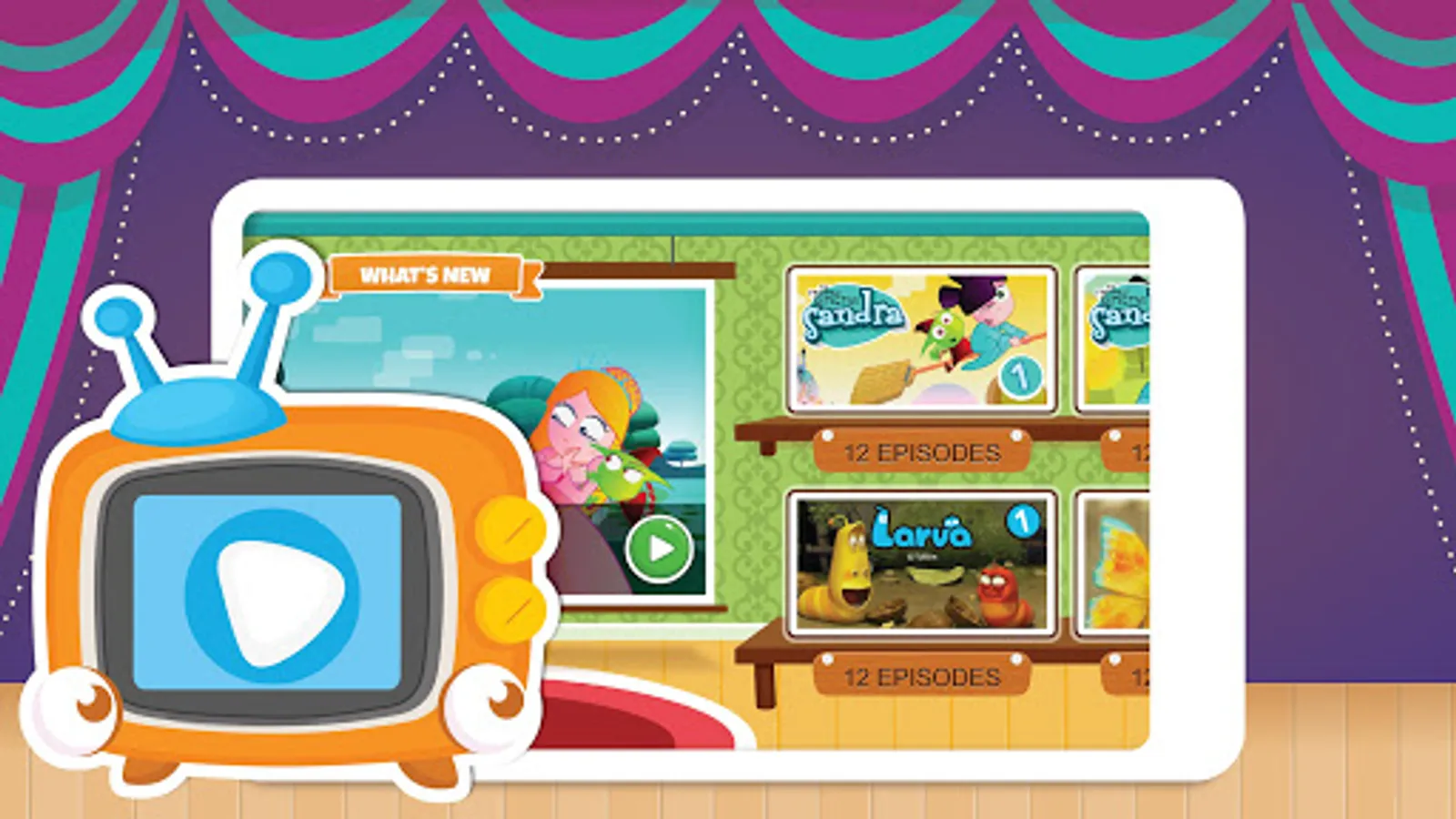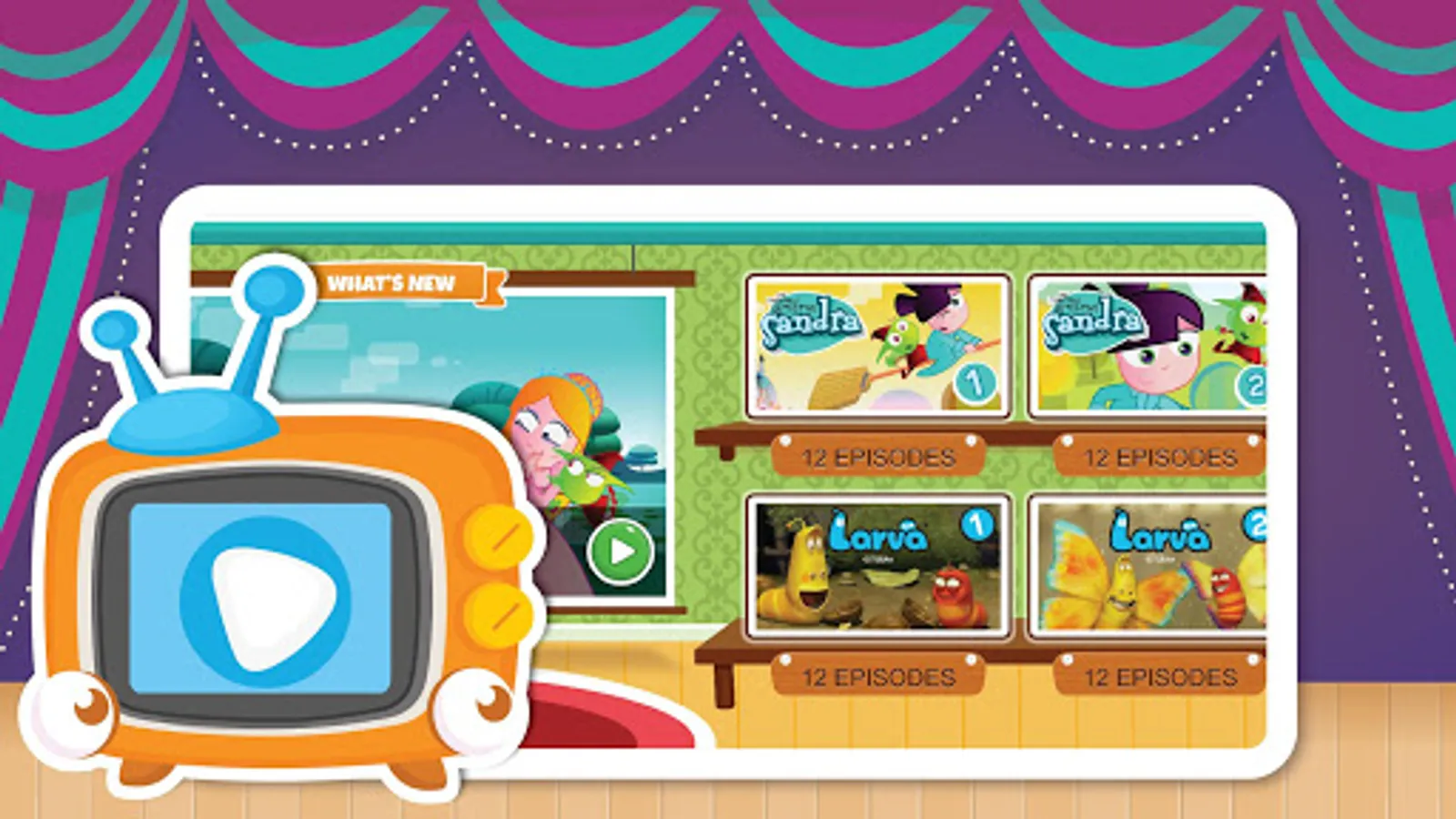 In the TV room, you can browse more than 200 videos organized by characters. New episodes and new popular TV shows are added every month.