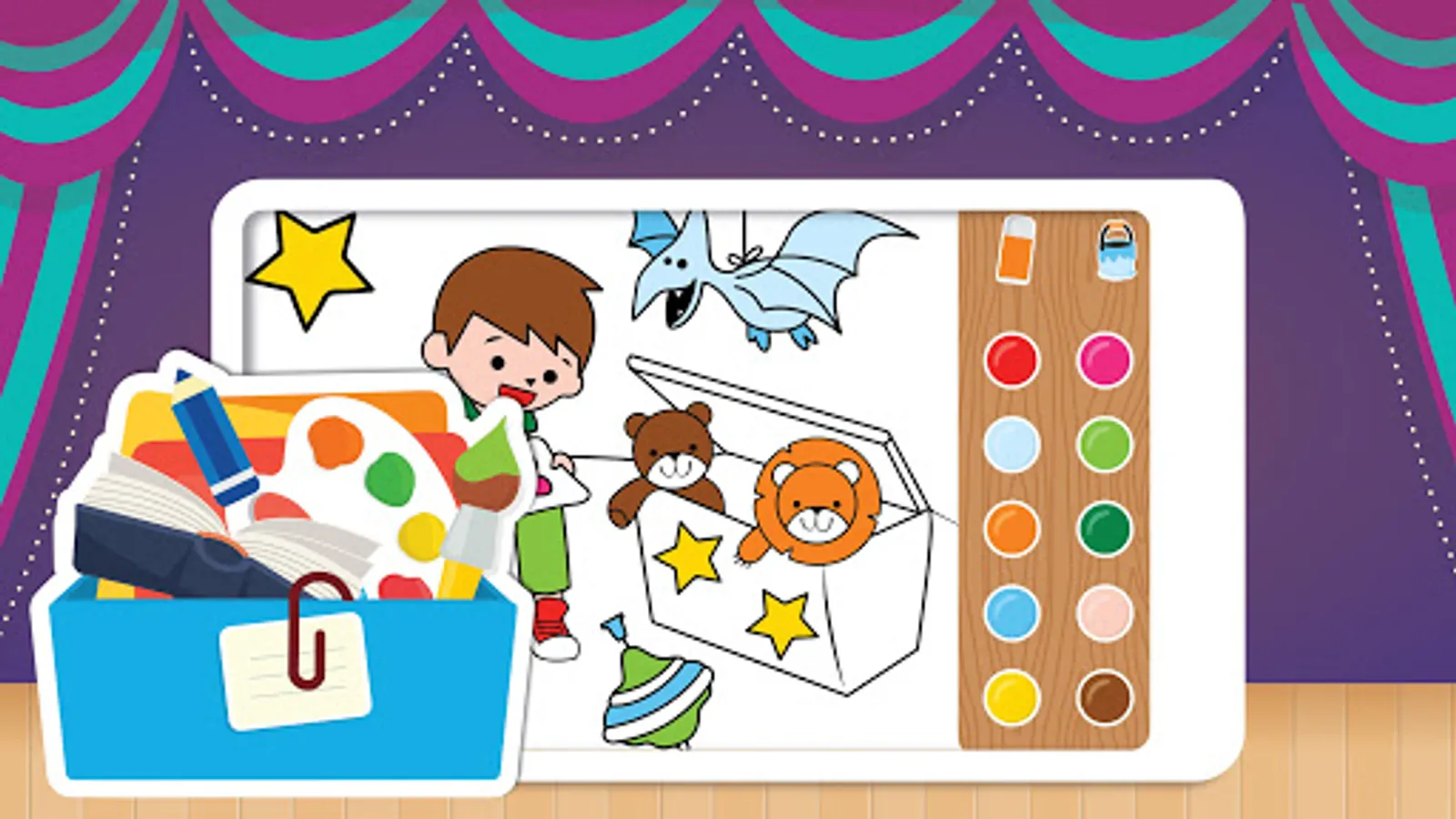 In the kitchen, your kids can play with lots of animated stickers with different scenarios.