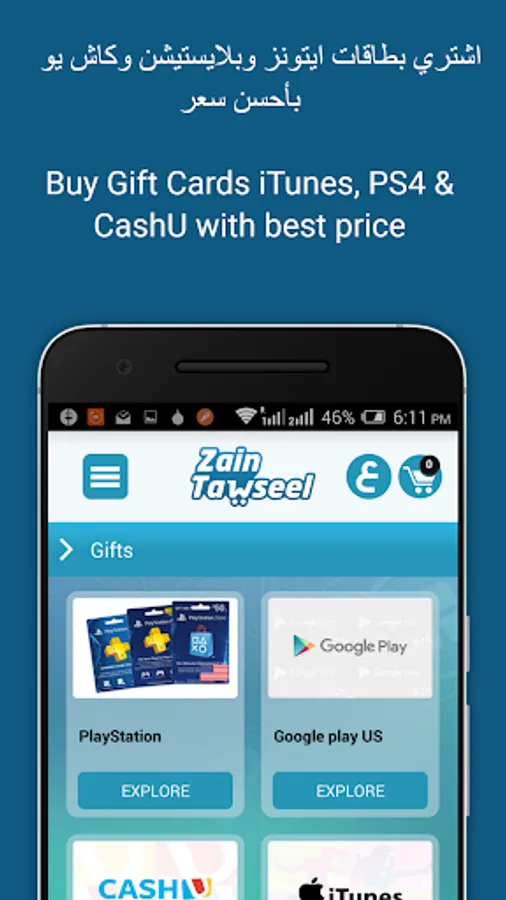 Zain Tawseel deliver Zain & VIVA & Oredoo payment to Kuwait and pay with Knet, Visa, MasterCard and cash on delivery. and offer gift cards Google Play cards, CashU, PlayStation.