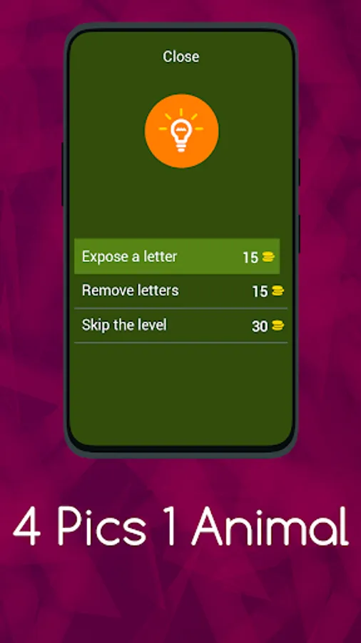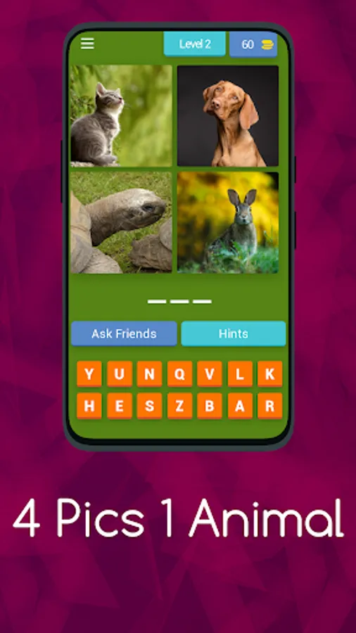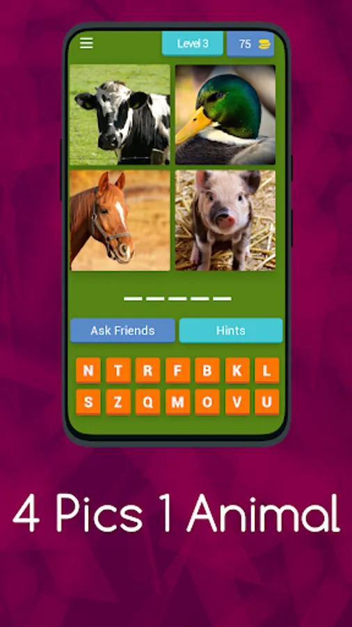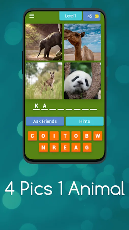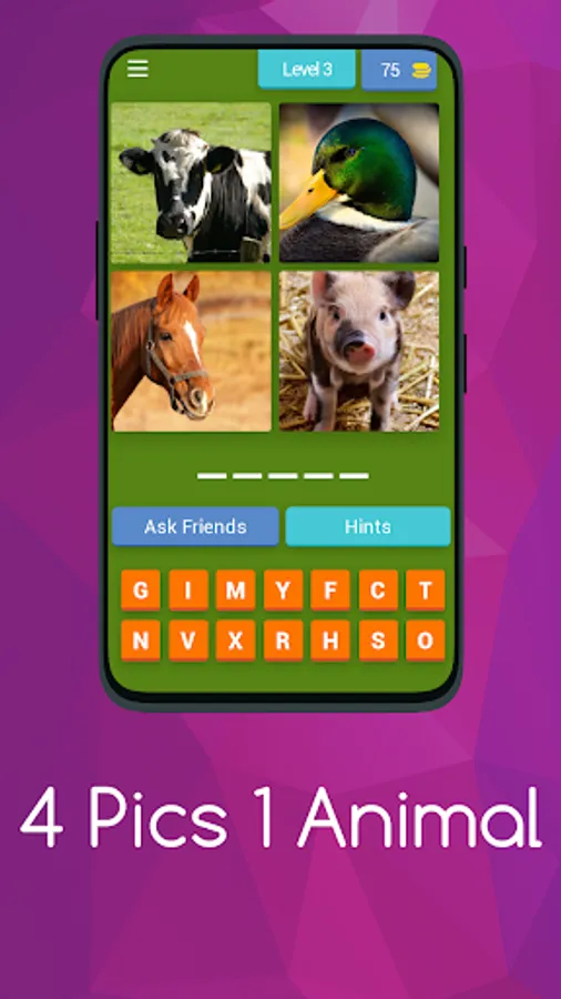 In "4 Pics 1 Animal", you engage in a classic quiz mode where each question showcases 📸 4 pictures relating to 1 animal 🦁🐷🐧🐸. Your mission, should you choose to accept it, is to guess the animal. It's not only about recognizing the animal but about connecting the dots between the pictures, making it all the more interesting and tricky.