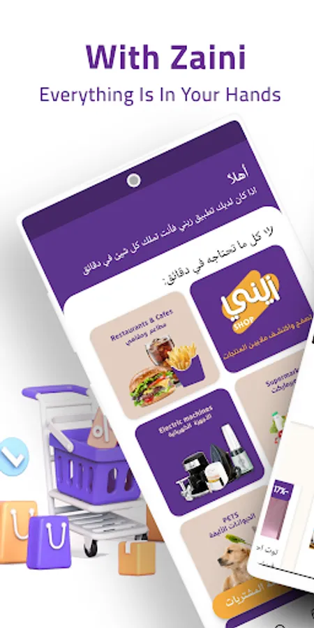 حمل الآن زيني وسنقوم بتوصيل الطعام والبقالة والمنتجات إليك في أسرع وقت