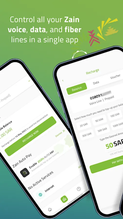 - [Zain Lines Management] Easily manage all your Zain lines in one place (Voice, Internet, Fiber). Flexible management is offered with security controls on critical functions.