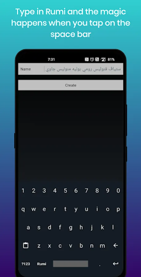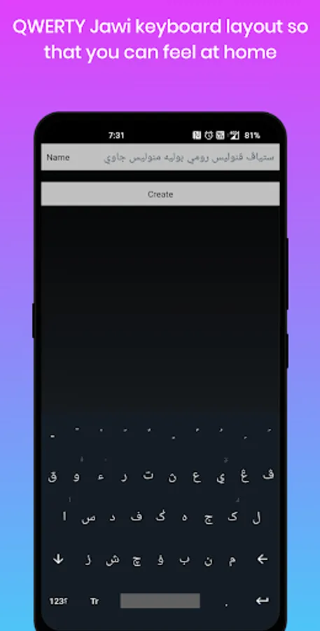 Using Rumi to Jawi transliteration layout, you type in Rumi and the output is in Jawi. Emoji keyboard also provided.