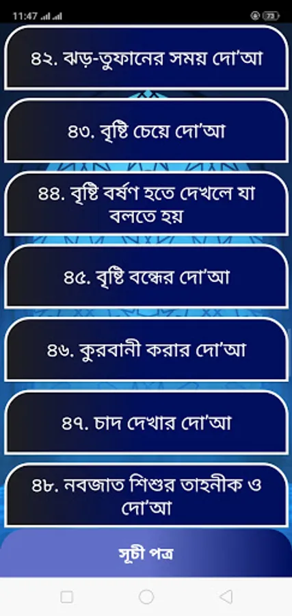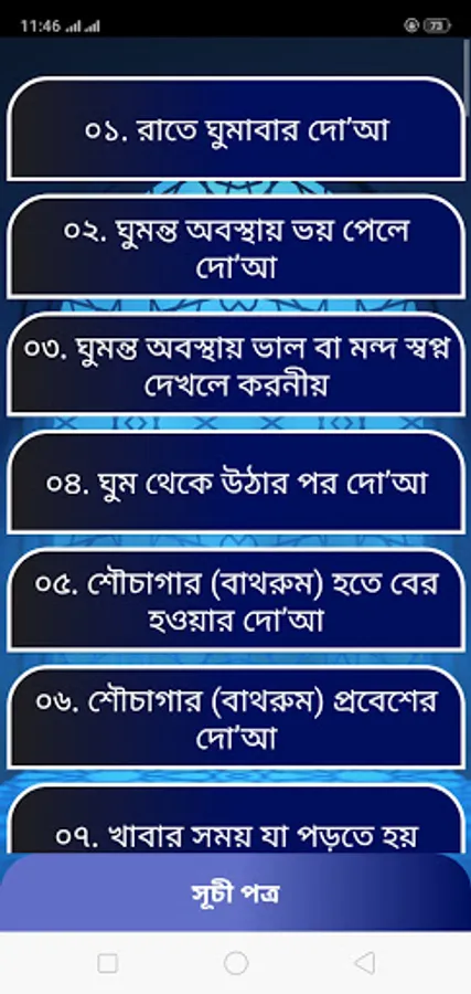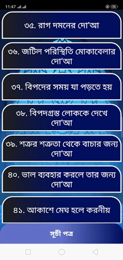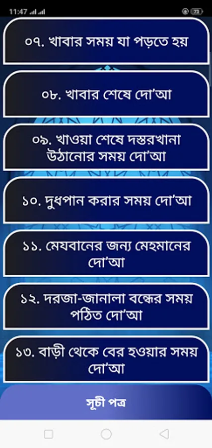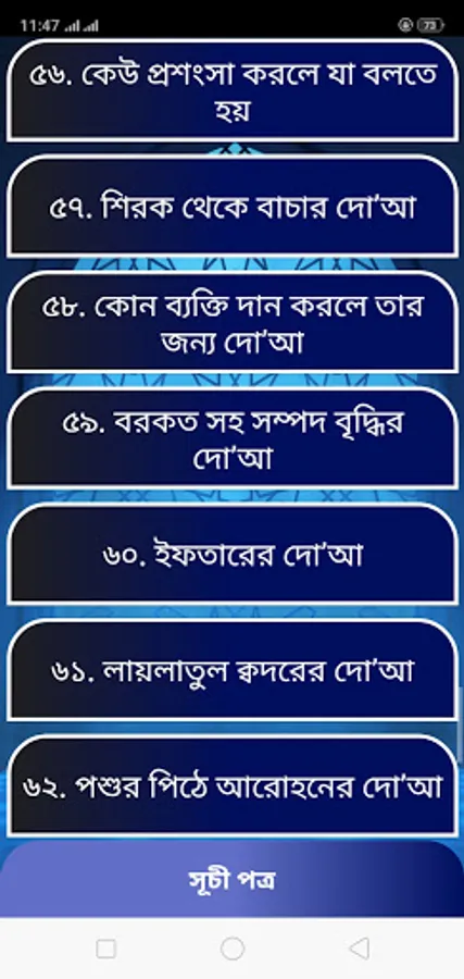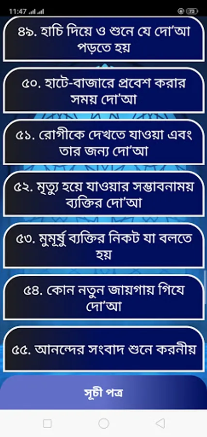 যে সকল প্রয়োজনীয় দোয়া রয়েছে বাংলা দোয়া (Bangla Dua) - প্রতিদিনের দোয়ার ভাণ্ডার অ্যাপ এ -