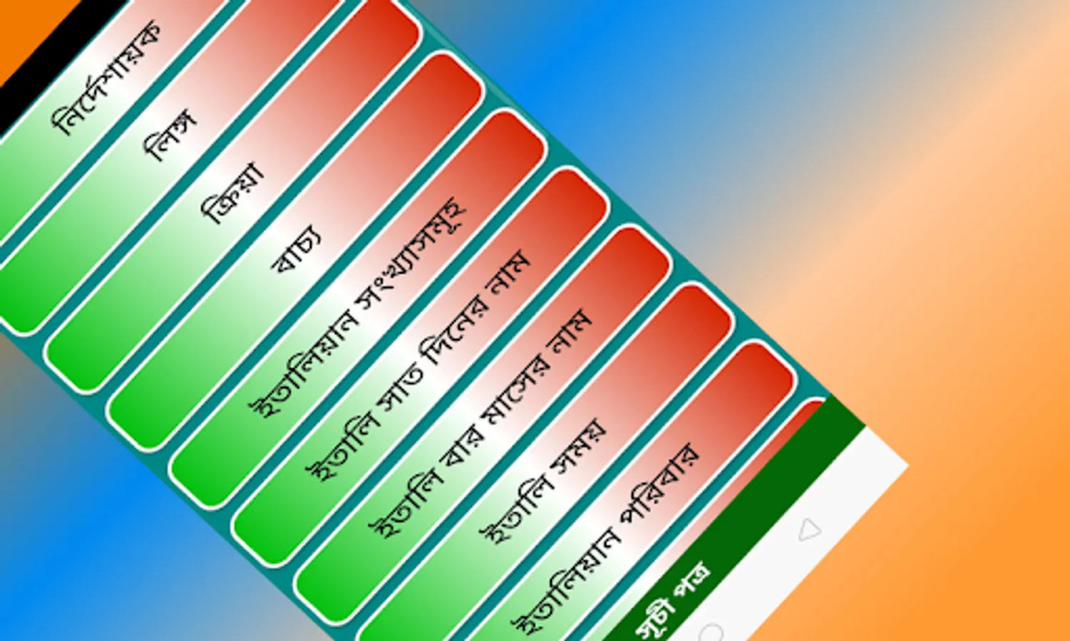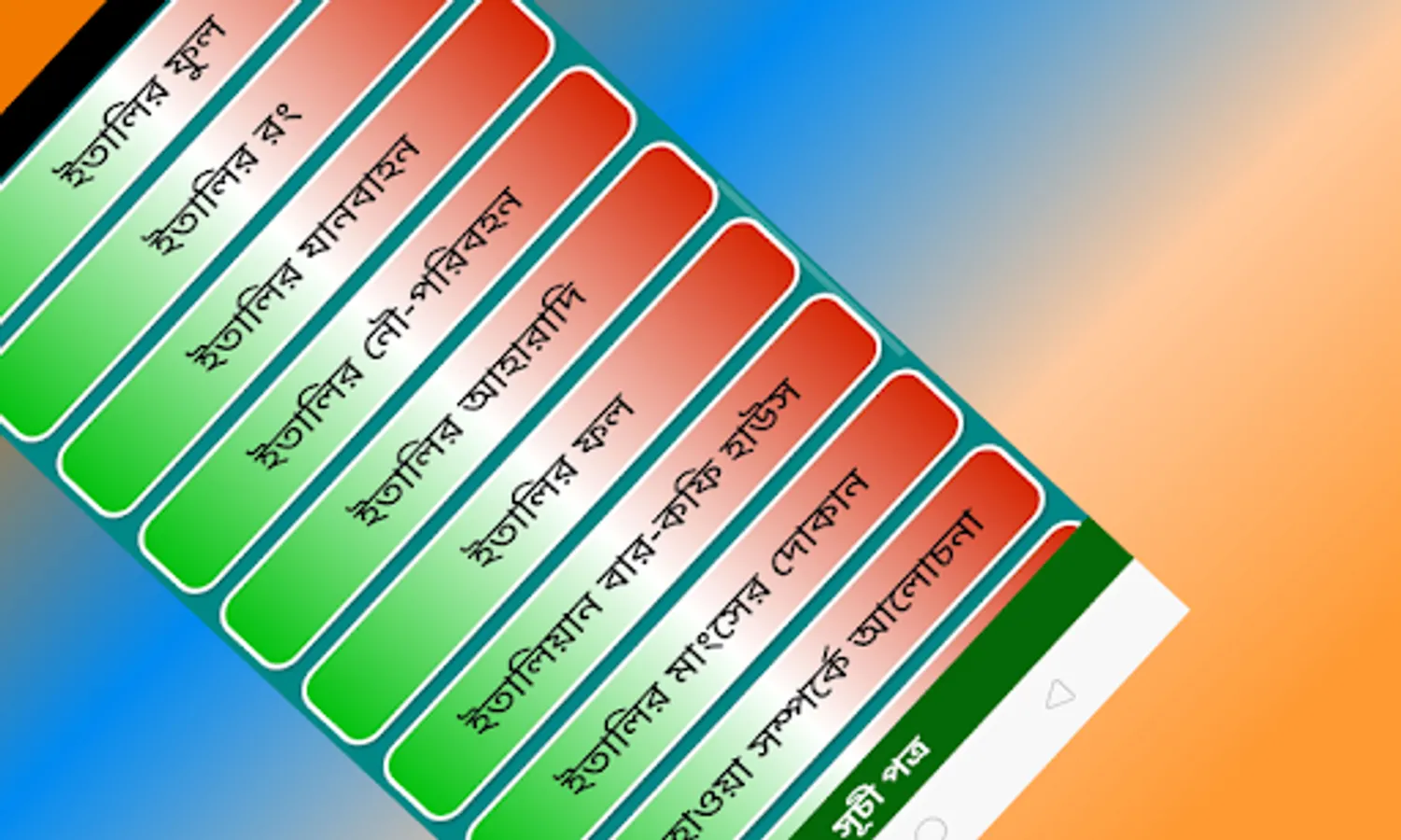Learn Italy language offline with ইতালীয়ান ভাষা শিখুন. Our app is free and presents simple ways to learn Italian language for the Bangla speaking people.