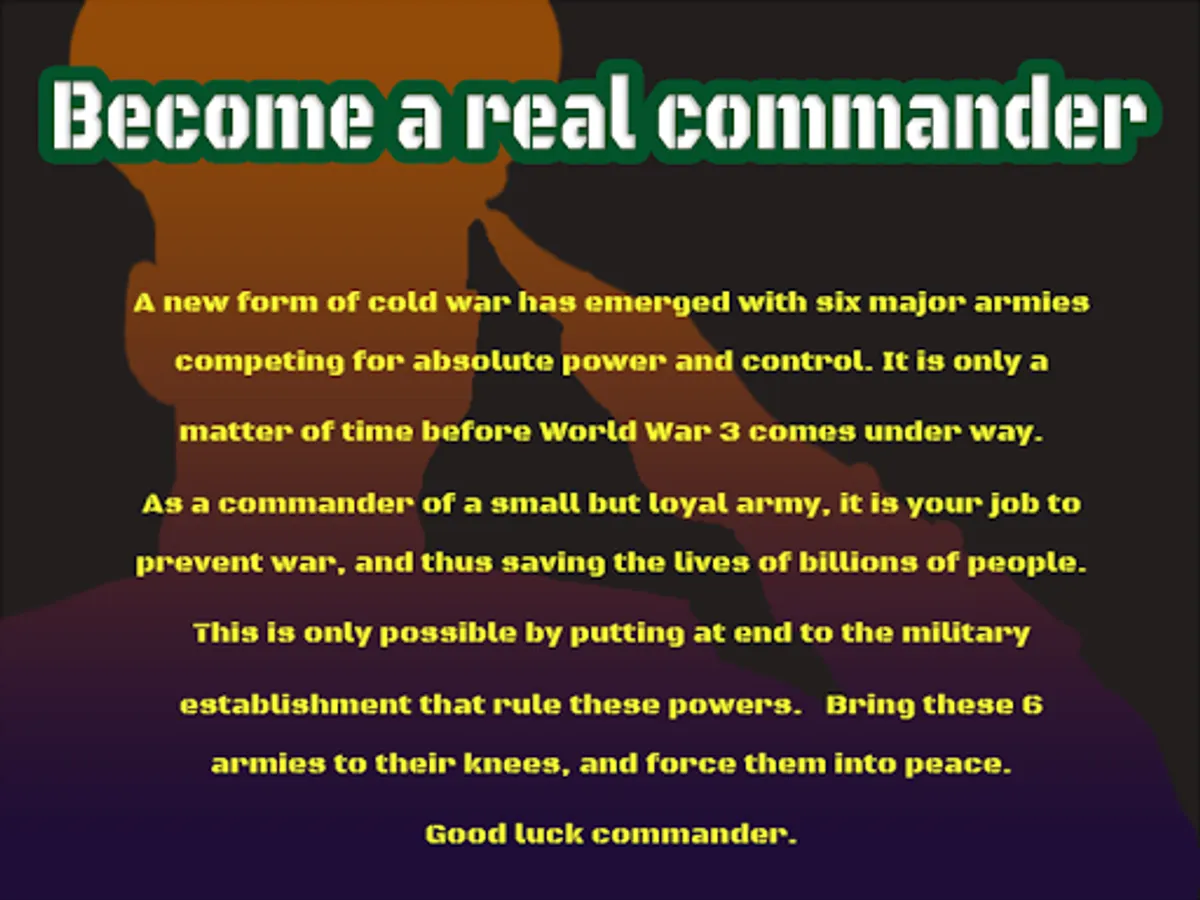 As a commander of a small but loyal army, it is your job to prevent war, and thus saving the lives of billions of people. This is only possible by putting at end to the military establishment that rule these powers.