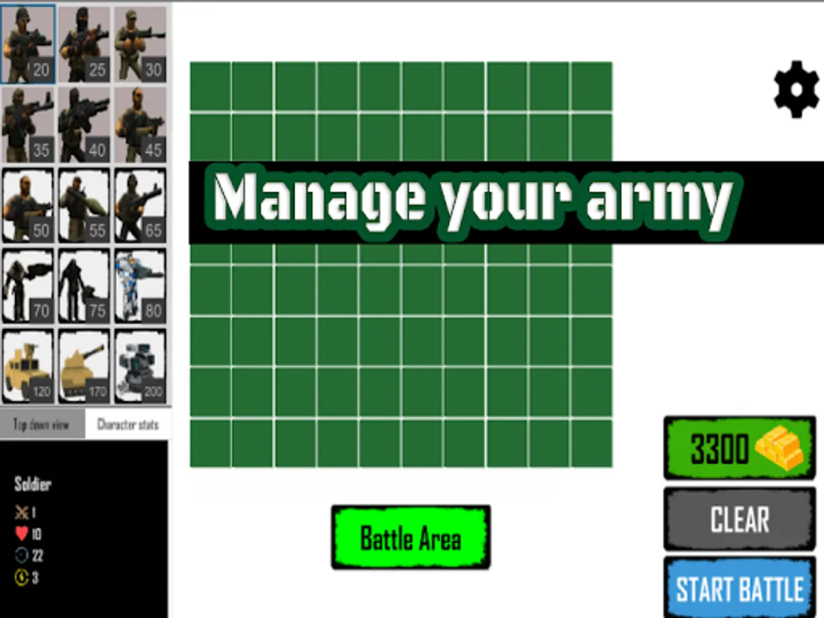 Choose your troops and place them wisely in the battlefield, taking into consideration your gold power. And destroy your enemy! Place your soldiers and combat vehicles according to the position of the enemy and in a combination that can be easily defeated. There are 18 X 6 battles so far waiting for you in this battle simulator game. Choose strong countries for easy gaming experience, and choose relatively weak countries for a difficult challenge.