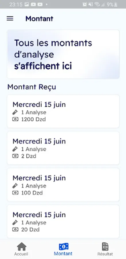 ses résultats par envoi du QR code , connaitre le montant d’un bilan ou d’une analyse en un