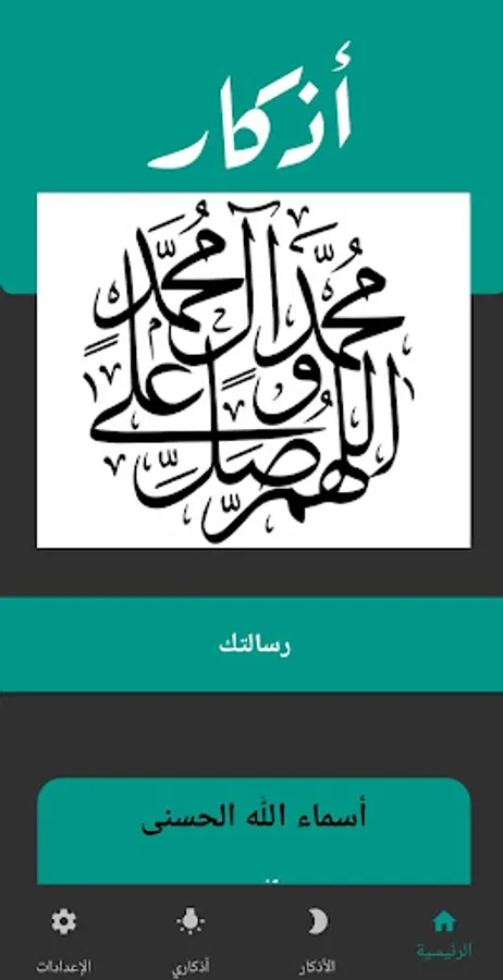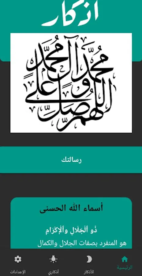 و رسالتك وهي مجموعة من الآيات القرآنية تظهر إليك كلما ضغط عليها ،