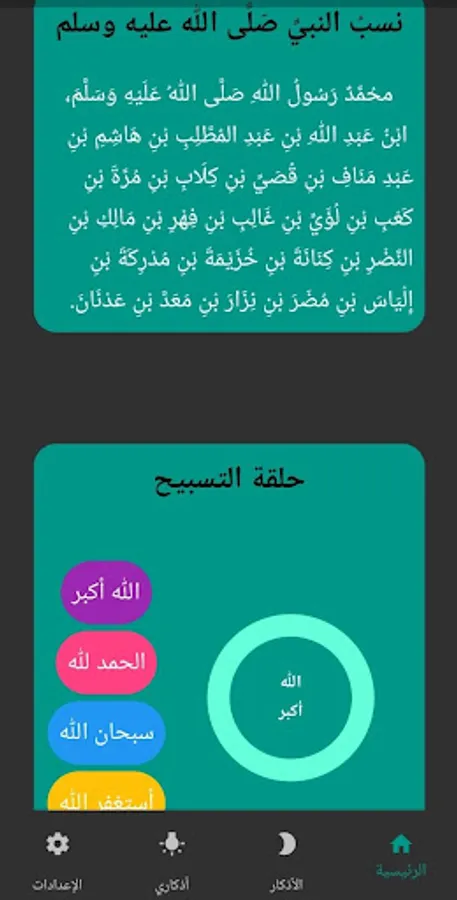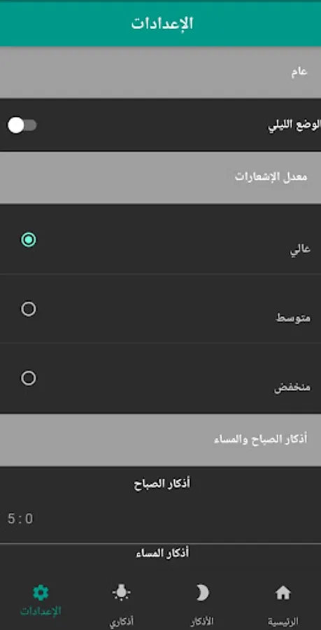 إمكانية تغير الوضع الليلي وتحديد معدل الإشعارات وظبط مواعيد أذكار الصباح والمساء .