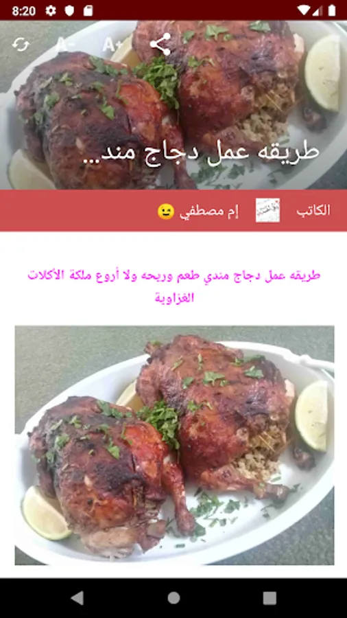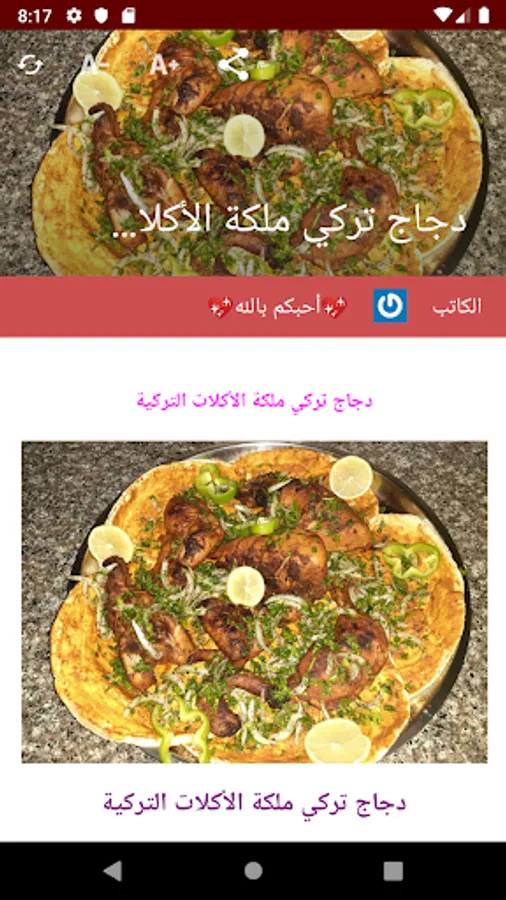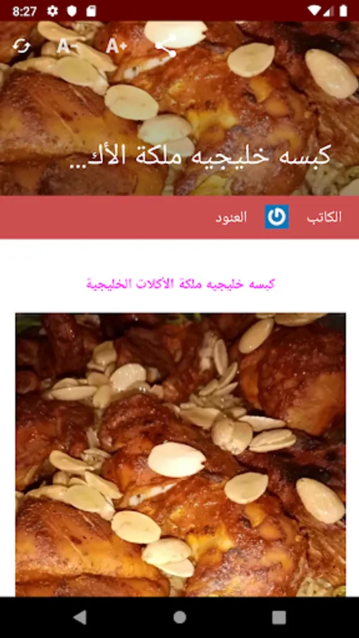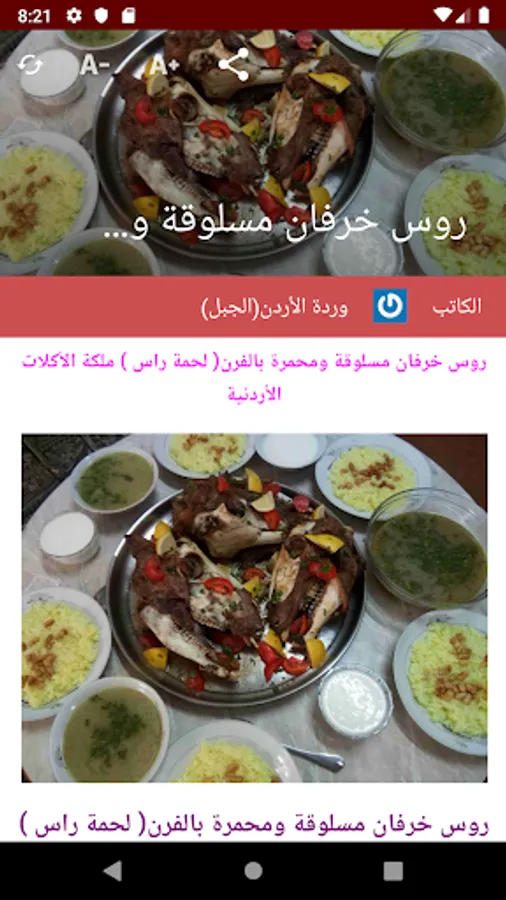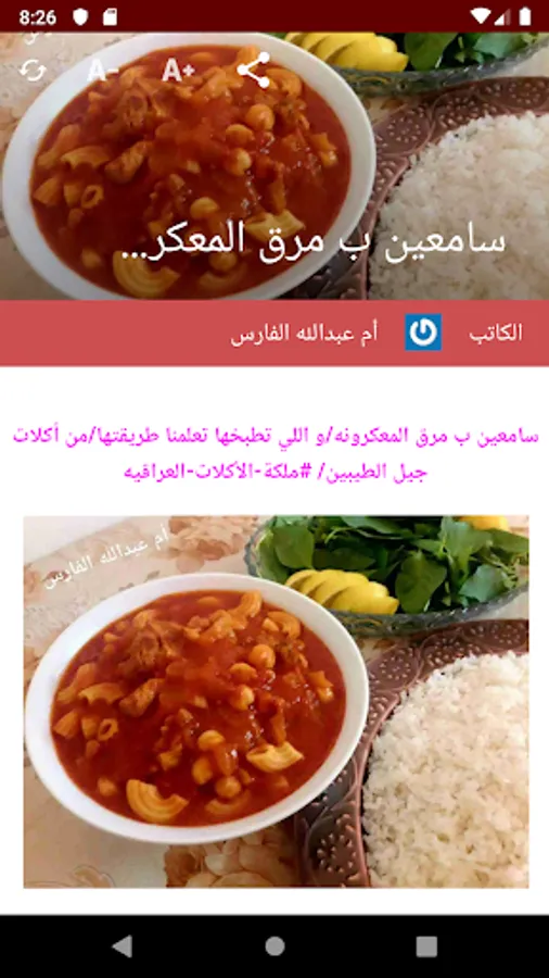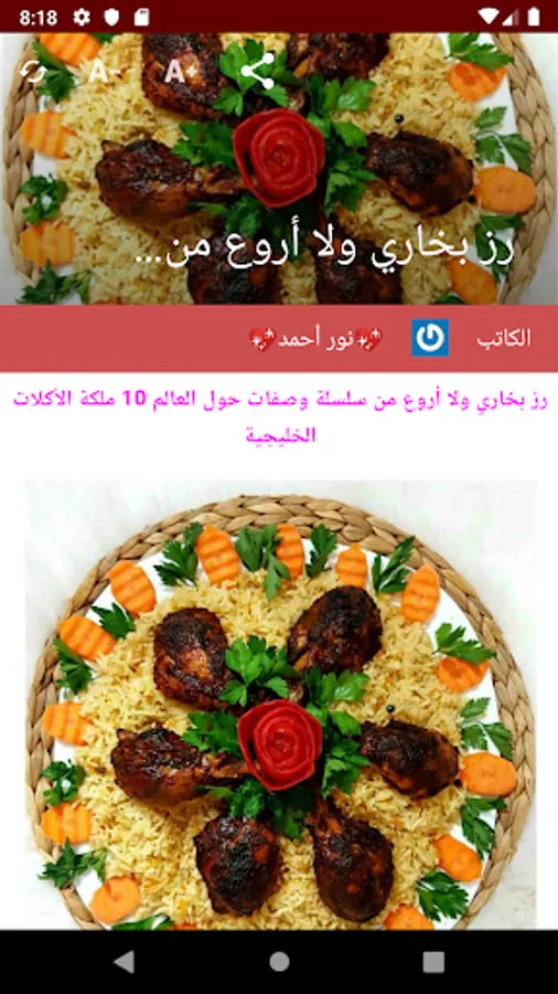 It also contains sweets of all kinds of cold sweets, Arab sweets and international sweets, and it has a great reference for main dishes of chicken, meat, birds and fish, and also a whole corner for pastries, whether sweet pastries or salty pastries, in addition to a whole section of salads and appetizers, in addition to video recipes and step-by-step illustrated recipes Step by step with detailed explanation, delicious and delicious food and drinks, and there is also a section called "My Favorites" in which you can choose your favorite recipes.