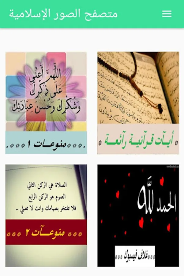 The application includes: (Islamic pictures, Islamic Facebook, pictures of Quranic verses, Islamic rule)