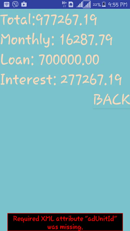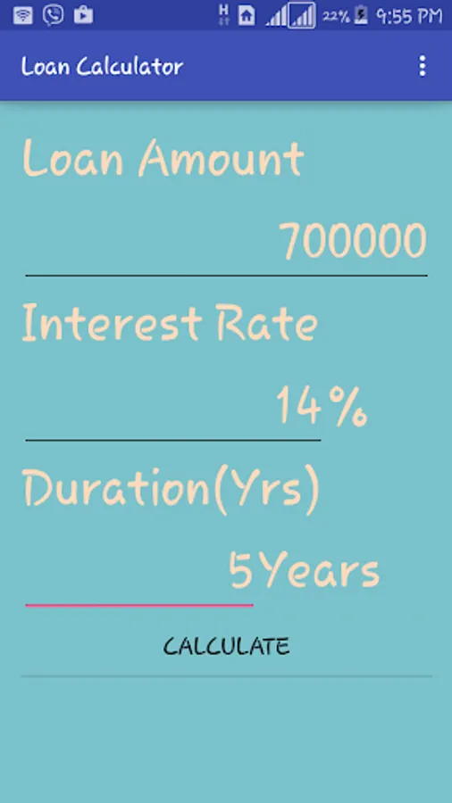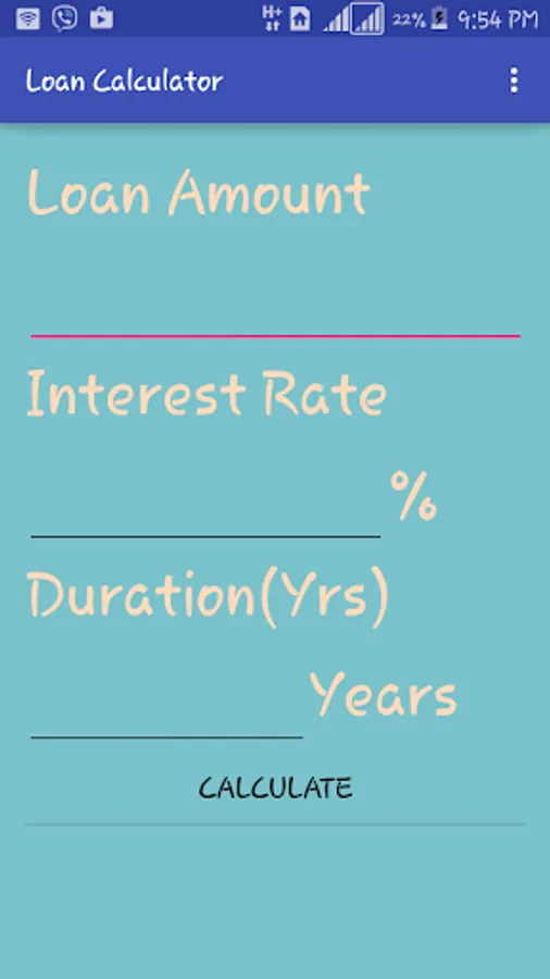 It is a simple application that calculates a loan interest, monthly payment and the total interest. After entering the loan amount, the interest rate and the duration in years you will get the total amount to pay, the total interest and the monthly payment for the loan duration.