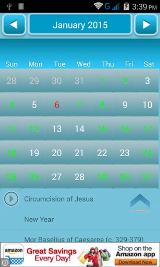 Displays the full calendar of Great Feasts, Episodes, fast days, days of remembrance of Saints and Holy Fathers, as well as fasting information ..