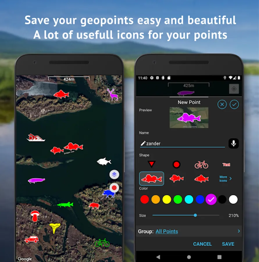 Convenient saving and searching for your geopoints, recording tracks, offline maps (fishing, historical, topographic, your own) it's not a full list of the main functionality of the app.