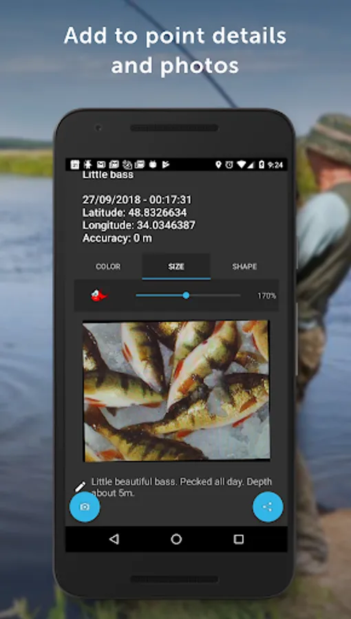 The application has been created for the most convenient and easiest navigation in the fishing conditions. Later, this application was also liked by treasure hunters, mushroom pickers, tourists, hunters, etc. The creator of the application is a fisherman himself, and initially, the application has been created for personal usage, because of lack of usability in previously tested apps.