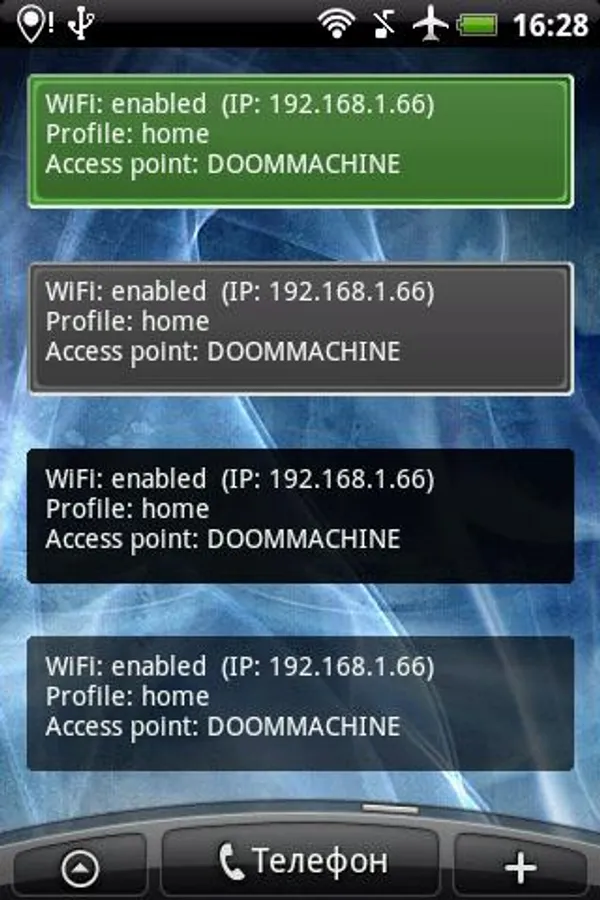 - widget (with different styles) to show info about current WiFi status and provide fast access to list of profiles