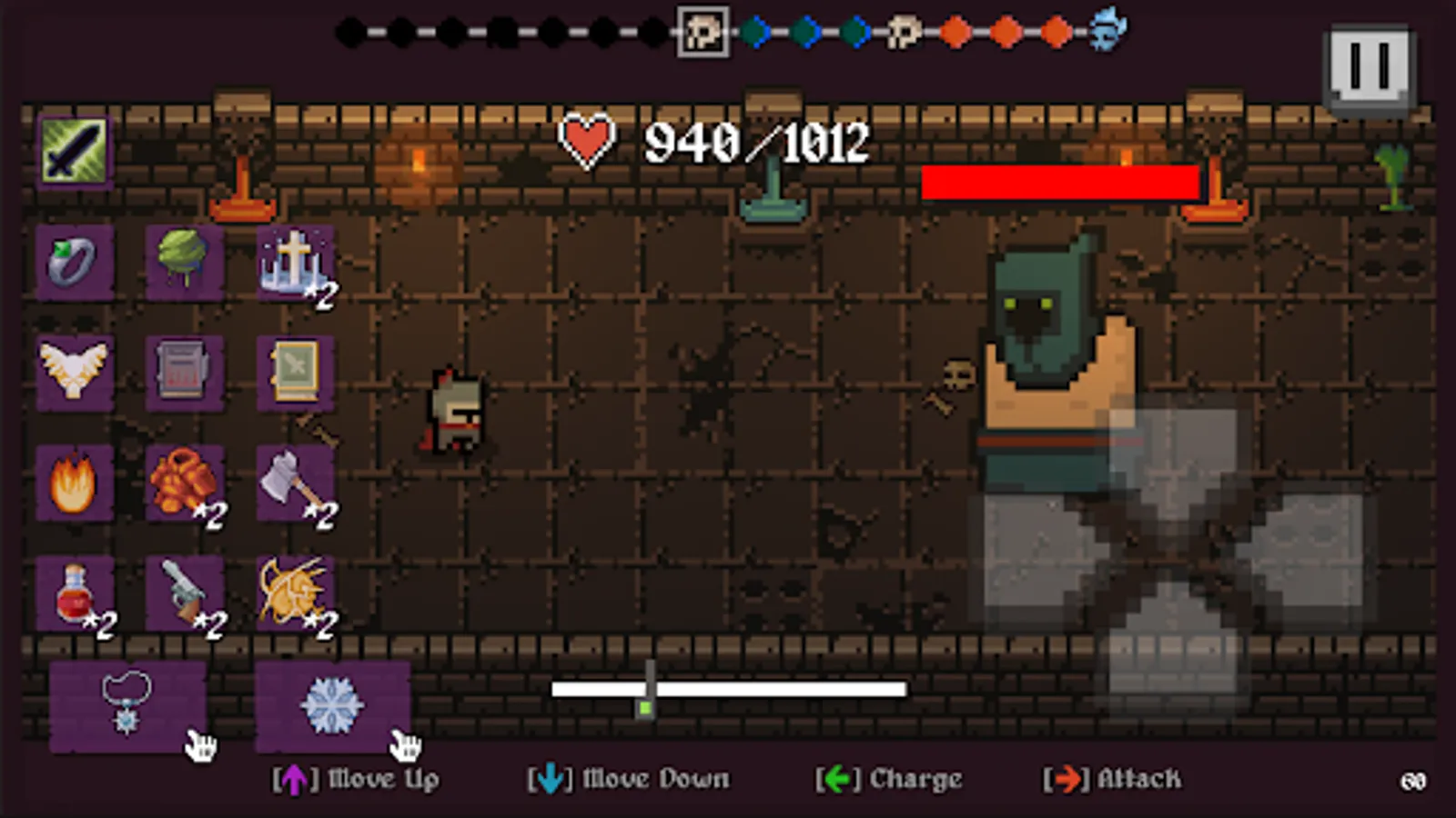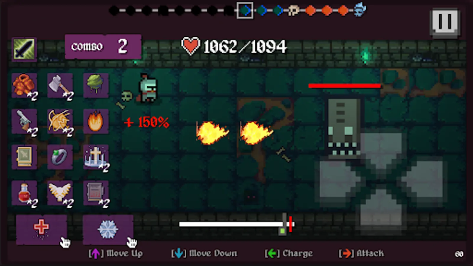 Progress through in a dungeon crawler experience and unlock new weapons and spells. Roguelite gameplay and slay the monsters and defeat bosses. Use music and rhythm to time your moves and attacks in this turn based RPG.