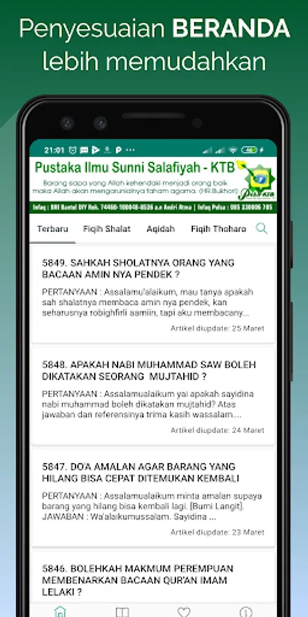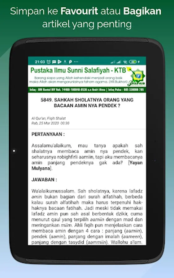Applications about religious questions and answers. The content of this application is sourced from the PISS-KTB server (Library of Sunni Salafiyah-KTB Science) www.piss-ktb.com, a Website that presents thousands of current questions. Start the study of monotheism, jurisprudence, hadith, interpretation and consultation of sharia.