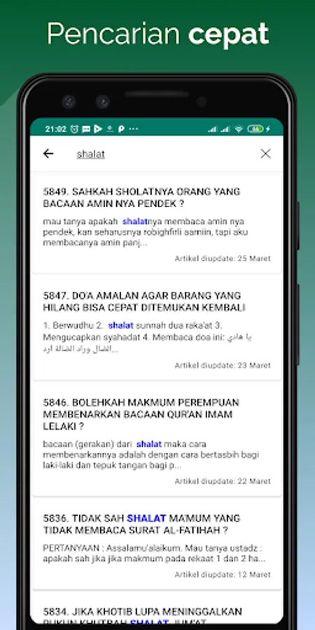 Another advantage of this application is that the search menu can search for content and titles at the same time. It is different from ISLAMIC ANSWERS that only search for titles.