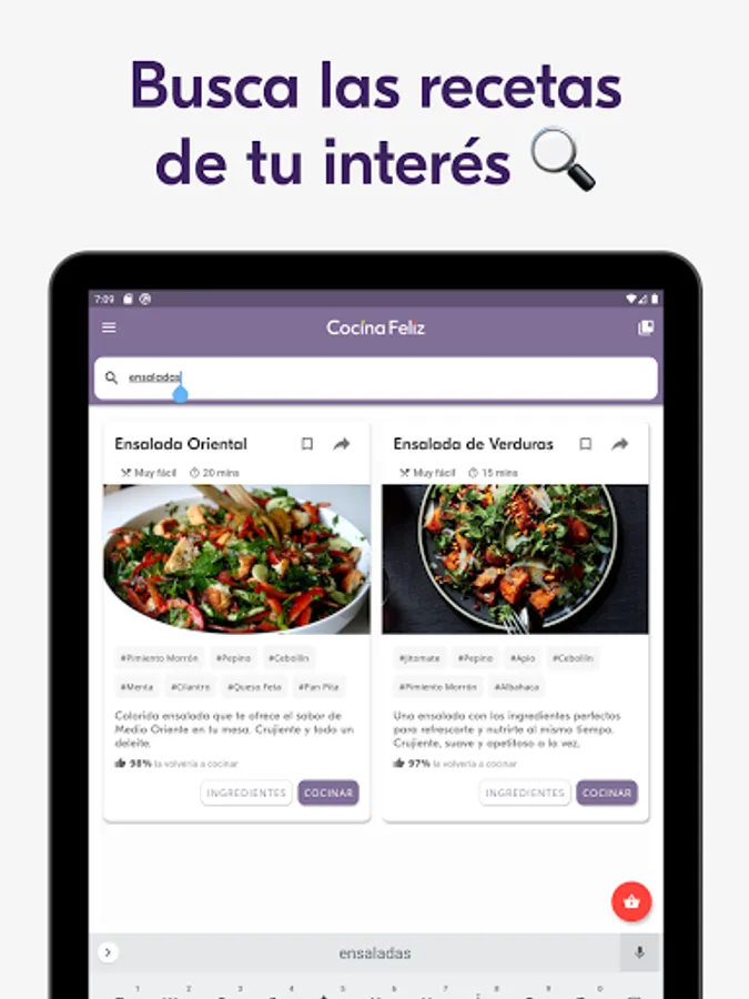 Cooking delicious and healthy recipes is very easy. Happy Kitchen app now includes a shopping list where you can check the missing ingredients for various recipes.