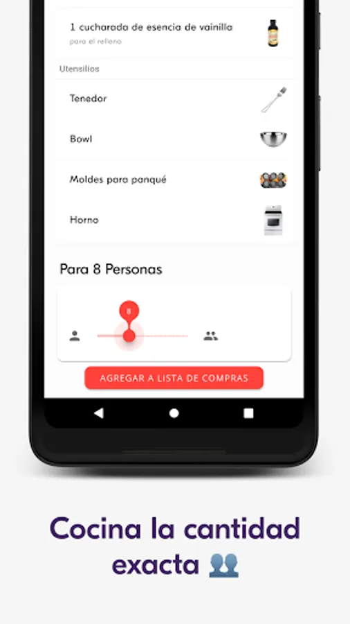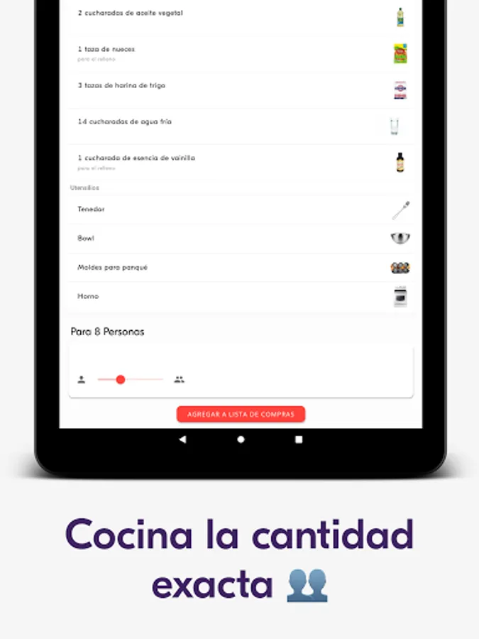• Add several recipes to your shopping list to mark them in the super market or share only the ones you are missing on WhatsApp.