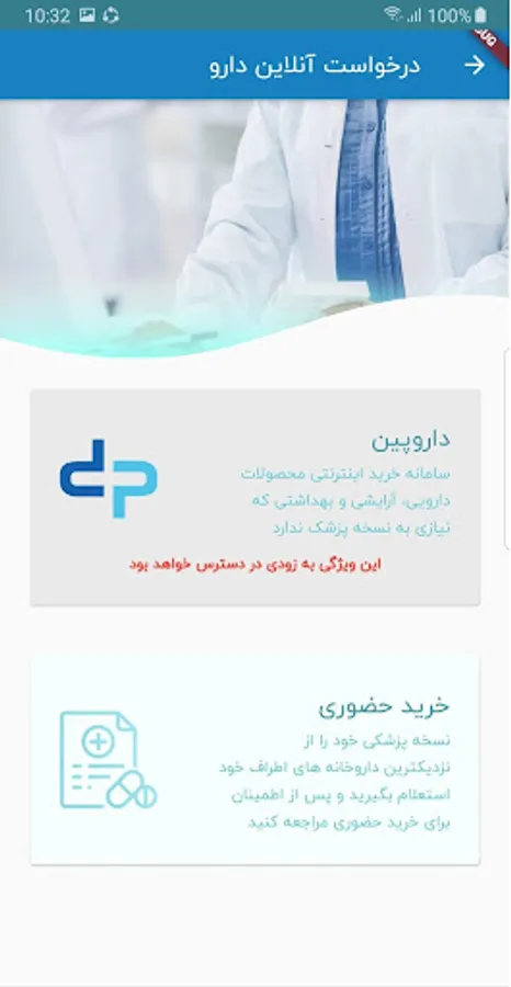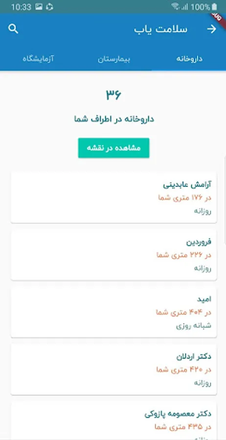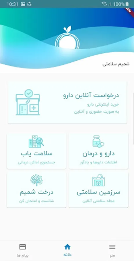 Search online pharmacies all over the country, Darvyab service, find the nearest hospital, pharmacy, laboratory and health centers near you personal electronic health records, medical advice and dozens of other applications Shamim Health Health