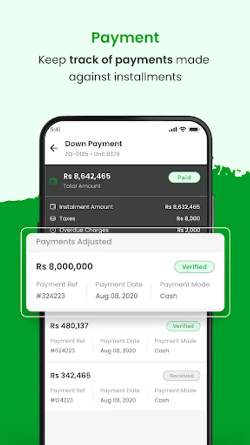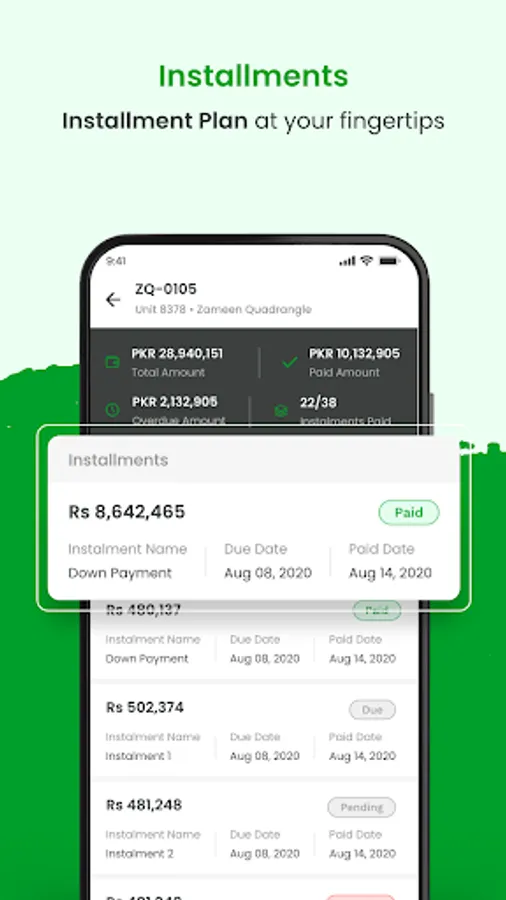 Check the status of installments i.e Pending, Due, Received, or Paid.