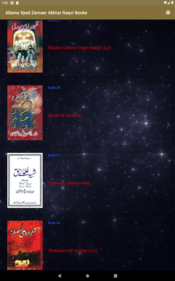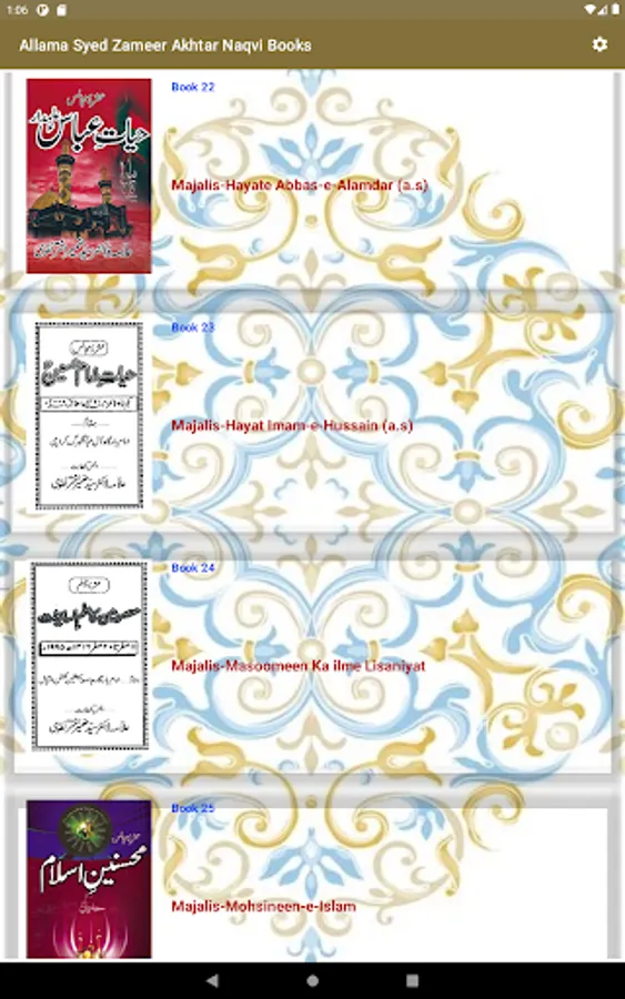 This app has a lot of books of Allama Zameer Akhtar naqvi. Some of these are published and others are in scanning process which will publish soon.