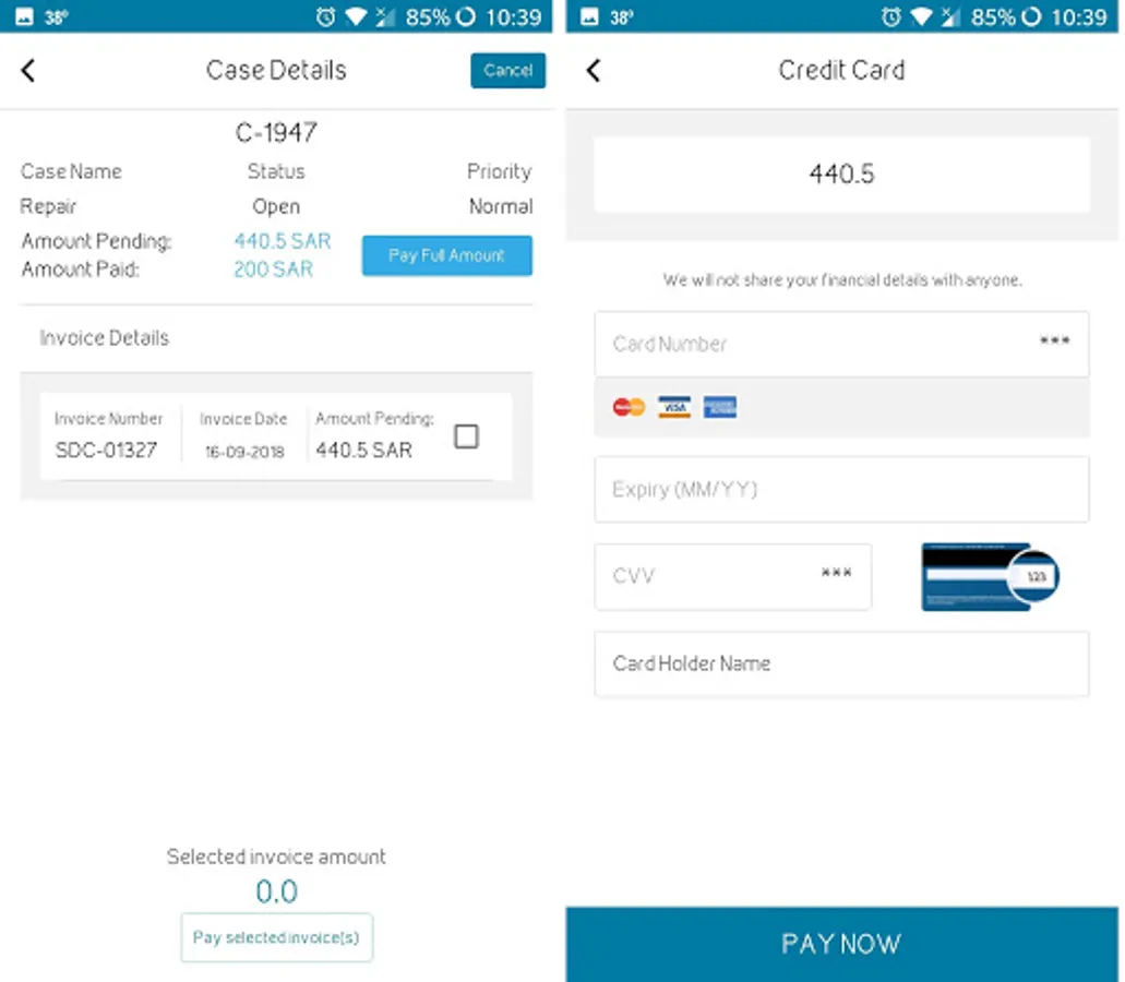 بمجرد تأكيد الطلب، سيتم إرسال رسالة تلقائية إليك لإبلاغك بزيارة الفنيين. يُمكنك تتبّع حركة تنقل فنيي الشركة ومواقعهم ووقت وصولهم إلى موقعك. كما يمكنك دفع تكلفة الخدمات المختلفة بواسطة بطاقة الائتمان بكل سهولة وأمان.