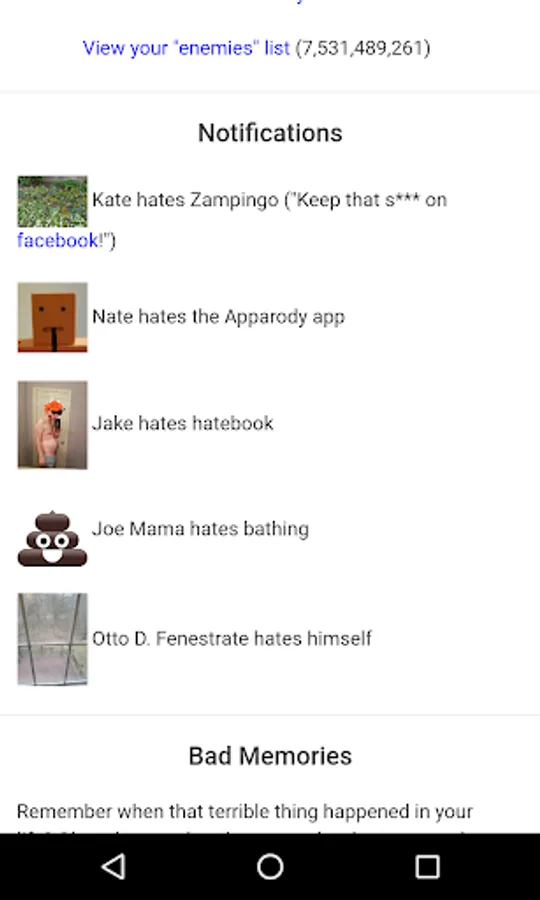 Get annoyed by your enemies on Hatebook, watch Slapcat slap you in the face, and order a potato with Tuber. Enjoy these bizarro concepts all in one place- all accessible through your Apparody homescreen!