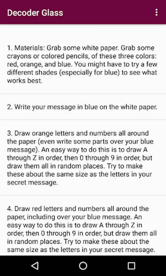 In the spirit of children's books and spy magazines that used red magnifying glasses to view secret messages inside a blur of colors, here is an app that lets you view those messages on your Android phone. You can even create your own messages and share them with your friends!