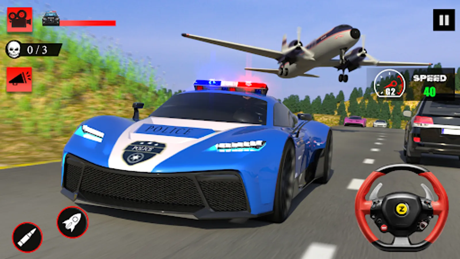 Police chase car games welcome you in most wanted chasing adventure. Get this car game and feel the thrill of police chase in highway traffic. It is your first day as a law enforcement officer in US police department. Today you are going to learn how to chase the criminals. In this car driving game you have to chase the thug criminals and city gangsters with your police car. Show down extreme crazy stunt tricks with massive hot pursuit police cars in a grand city of crime. Your duty as a police driving officer is to keep the busy roads of city a safe place. Hunt down and chase the most wanted criminals and street robbers of criminal city. City gangsters are tried to outrun from your chase with police car.