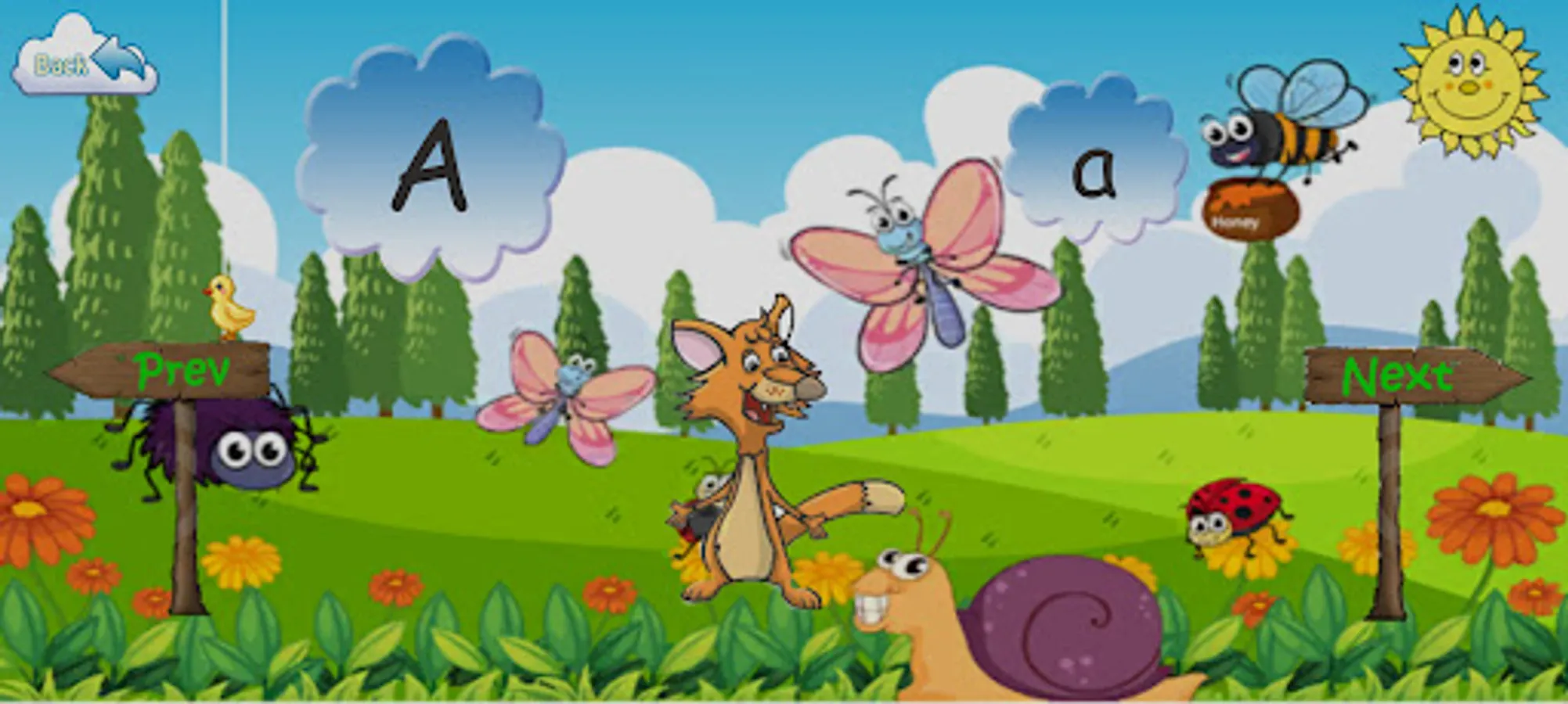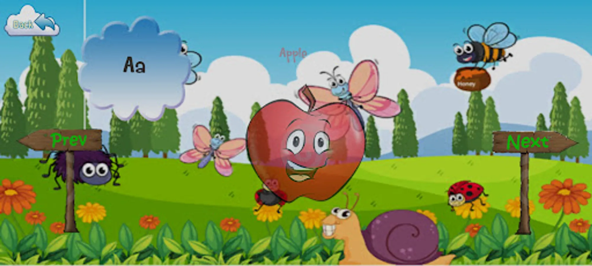 تتضمن تطبيقات تعليم الأطفال والبراعم الانجليزية: كيفية قراءة كل حرف من الحروف الأبجدية وبعض الكلمات الانجليزية والتعرف عليها