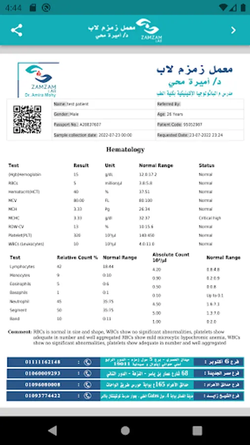 تطبيق معامل زمزم لاب هو تطبيق يمكنك من الاطلاع على تقاريرك وفواتيرك فى المعمل بالاضافة الى انه يمكنك لحجز موعد فى المعمل او حجز زيارة منزليه